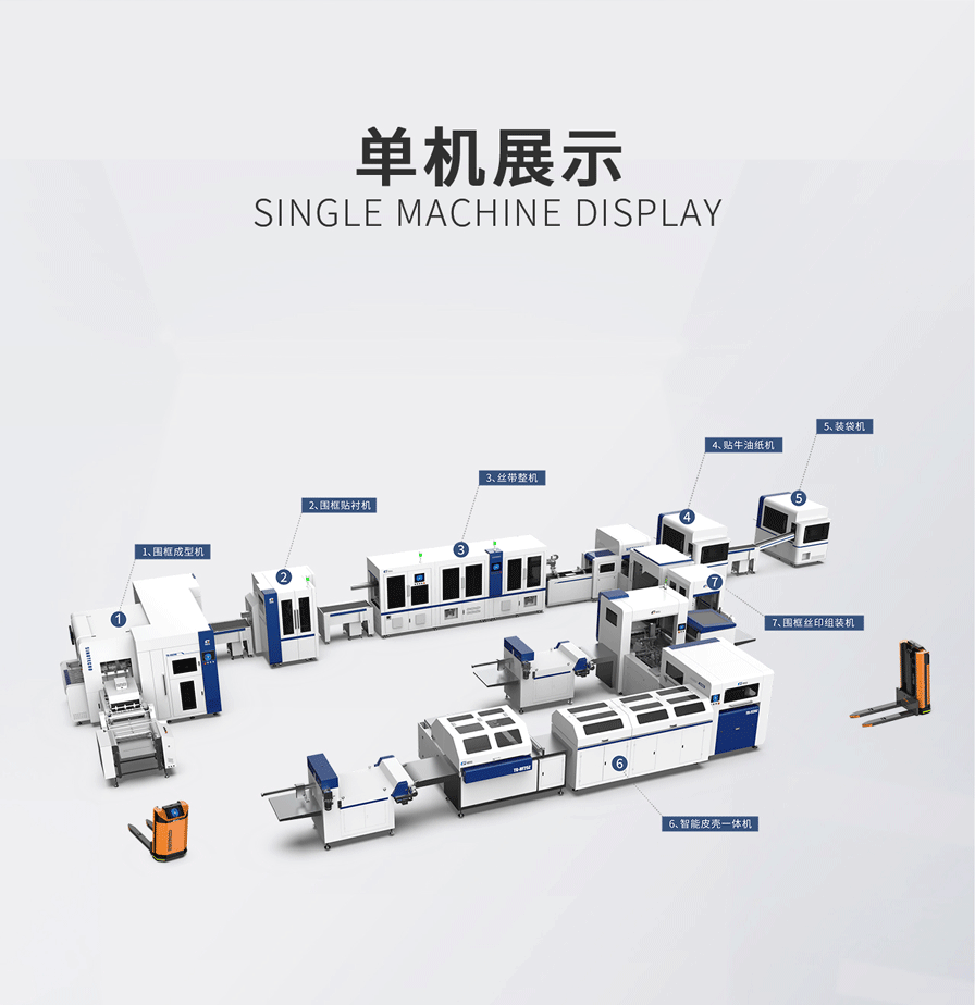 中科天工智能煙包圍框條盒線是專門針對(duì)精品煙包無(wú)底圍框條盒制盒的數(shù)字化整線。