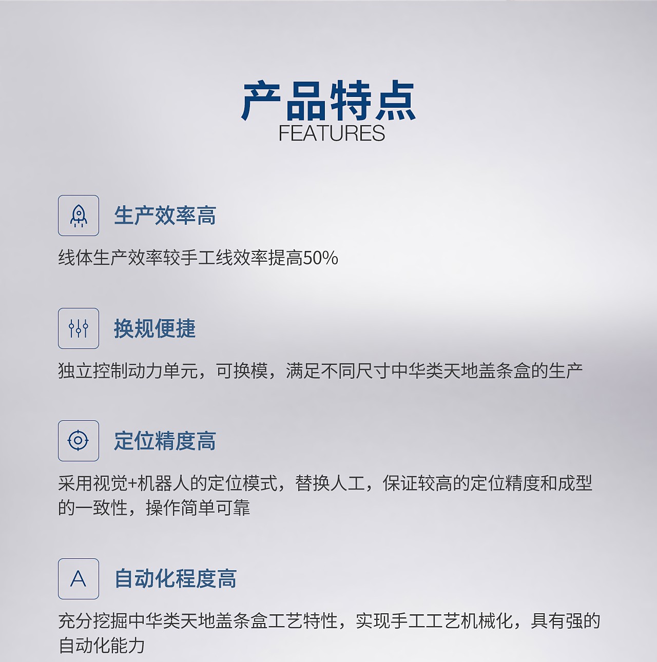 TG-CN20C智能煙包天地蓋條盒數(shù)字化整線可實(shí)現(xiàn)天地蓋糊盒成型、滾膠貼內(nèi)襯紙、貼連接條、圍條成型以及全自動(dòng)整形除泡等全套工藝。